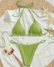 2022 New Women's Sexy Solid Color Beach Bikini Swimsuit High Waist Tie Bikini