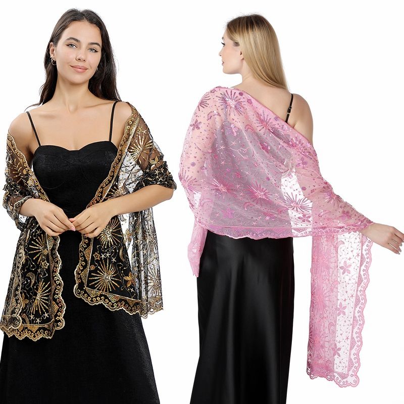 VOOTHOST Glitter Pailletten Abendkleider Schals für Frauen Reine Farbe Mesh Braut Brautjungfer Hochzeit Boleros Capes Wraps Dame Party Schal F0178