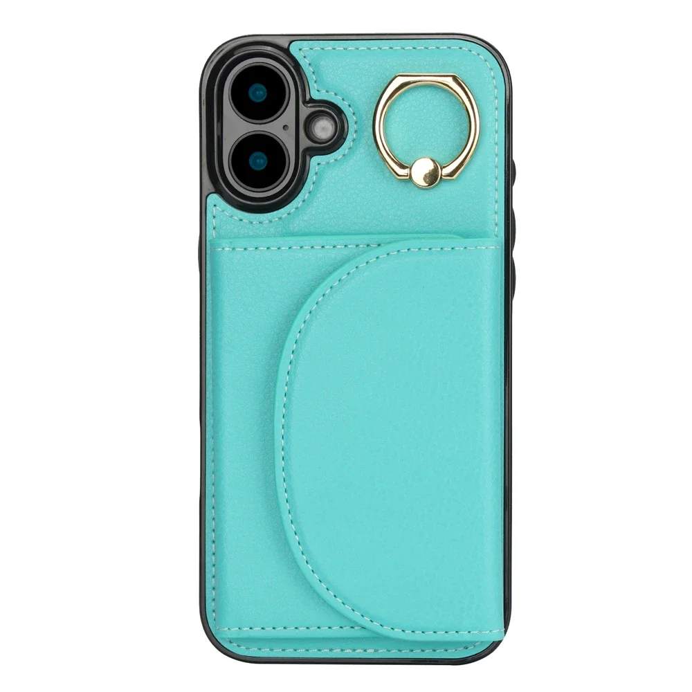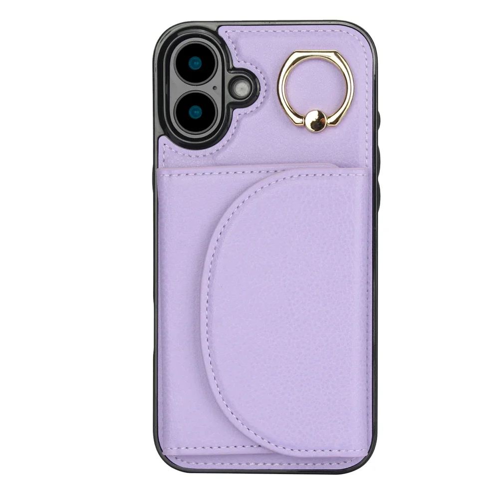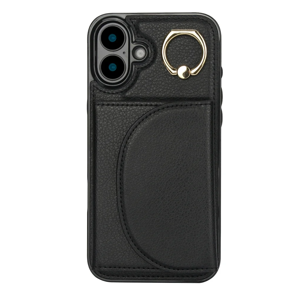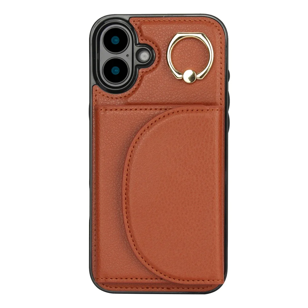 Brieftasche Ledertasche für iPhone 16 Pro Max 14 15 13 Fingerringhalter Telefonhülle Kartenfächer Vollständige Schutzhülle