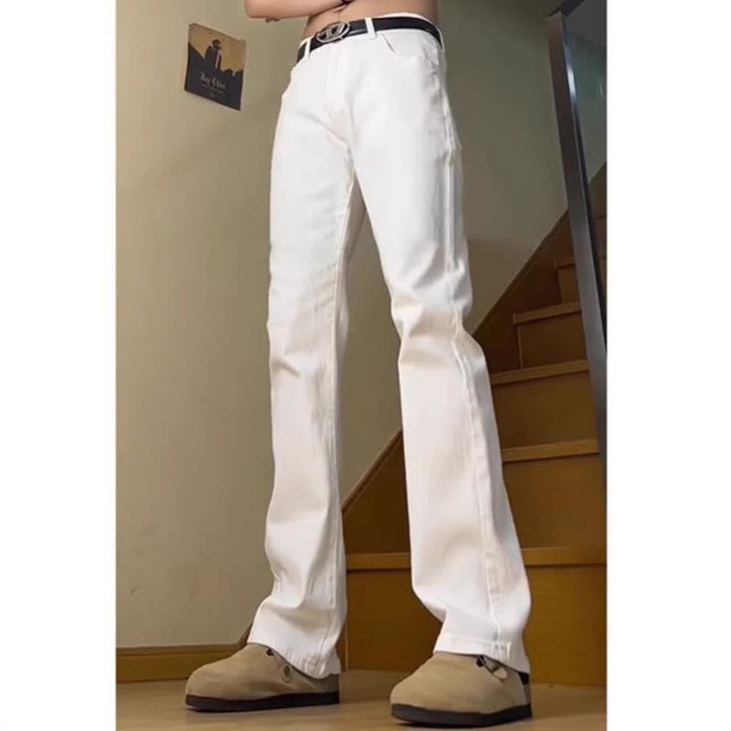 White cleanfit micro flared jeans men's autumn American high street fashion brand slim fit straight tube micro flared elastic pants