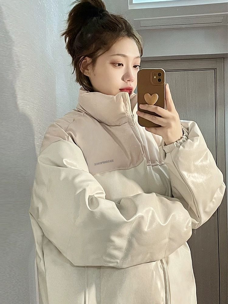 【Unshipped Instant Refund】White Duck Down Thickened PU Leather 2024 Winter New Design Oversize Couple Down Jacket Women's Coat Petite