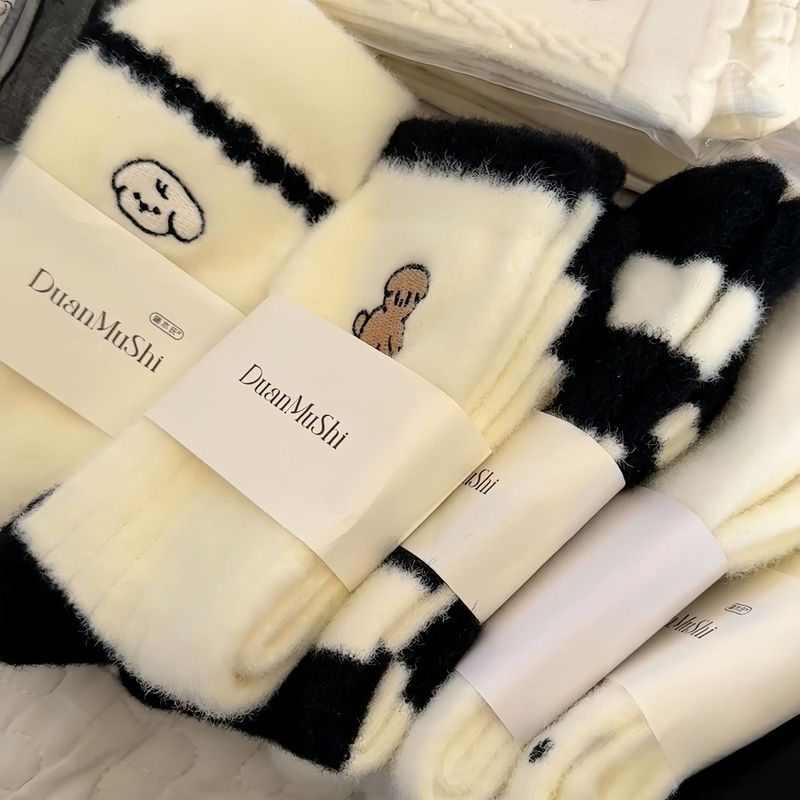 White Plush Socks for Women, Autumn and Winter Mid-Calf Thickened Australian Wool Warm Socks for Home Sleep, Cute Maternity Socks