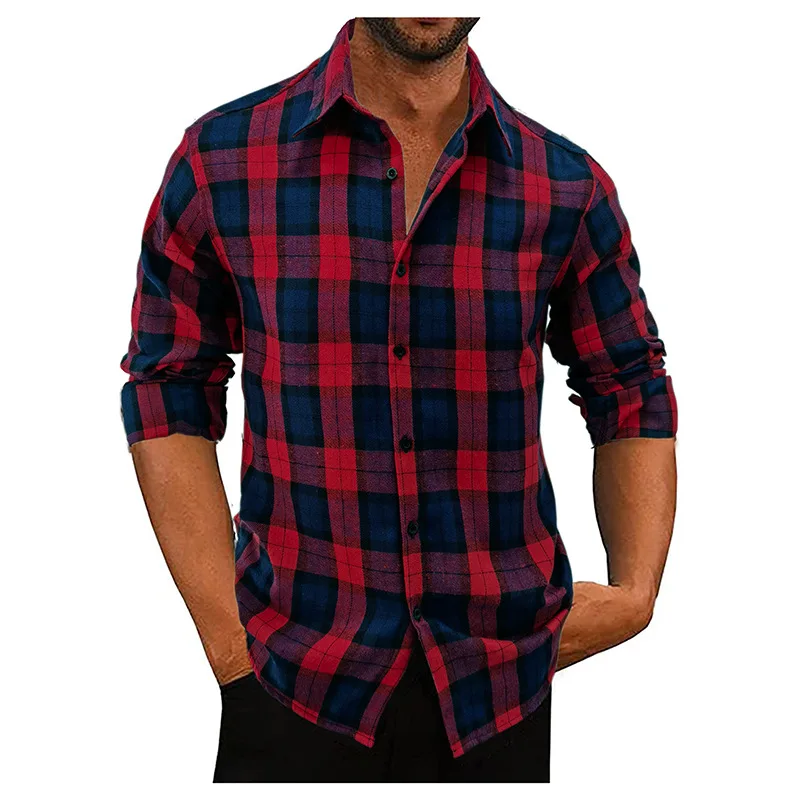 Wholesale high quality lapel Checked new style long sleeve casual shirts for men work shirt