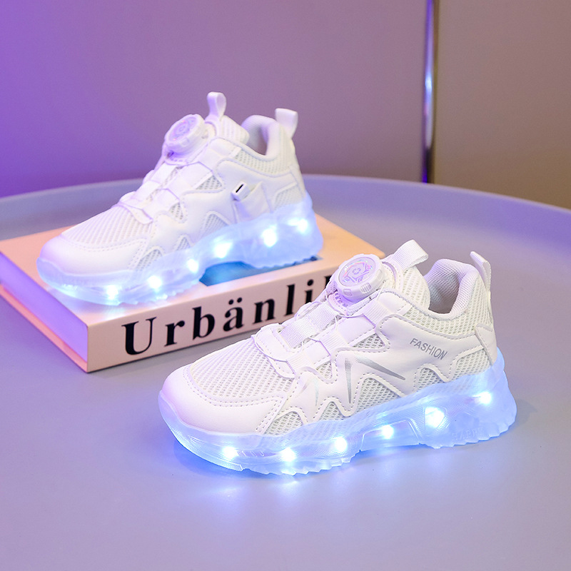 Rechargeable Luminous Shoes, Colorful Luminous Shoes, Rotating Button Mesh Small White Shoes, Boys and Girls, Children's Sports Shoes, Dad Shoes