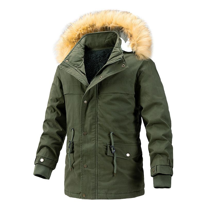Winterjacke mit Kapuze für Herren, dick, mit Fleece gefüttert, schmale Passform, mittellang, einfarbig, Baumwollmantel für Herren