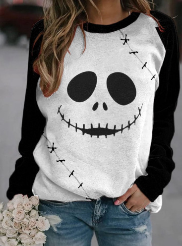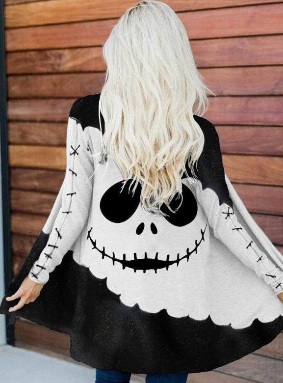 Damenbekleidung Halloween-Strickjacke mit lustigem Ausdrucksdruck, langärmeliges Jackenoberteil