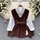Damenbekleidung Neuer Herbststil Leichter, reifer Stil Oberbekleidung Lockere Reversnähte Weißes Hemd V-Ausschnitt Schräger Knopf Strickweste Zweiteiliger Anzug