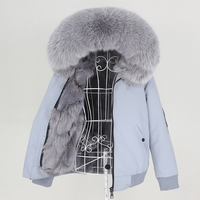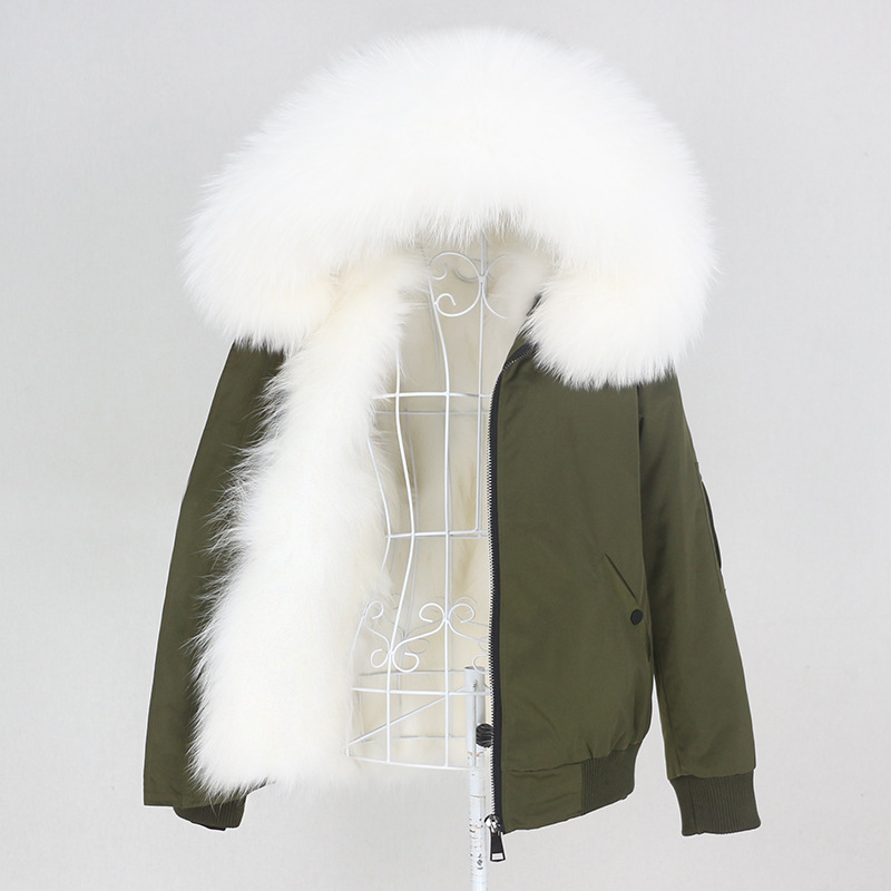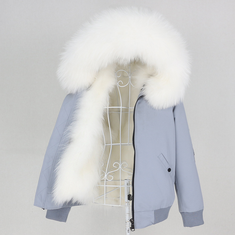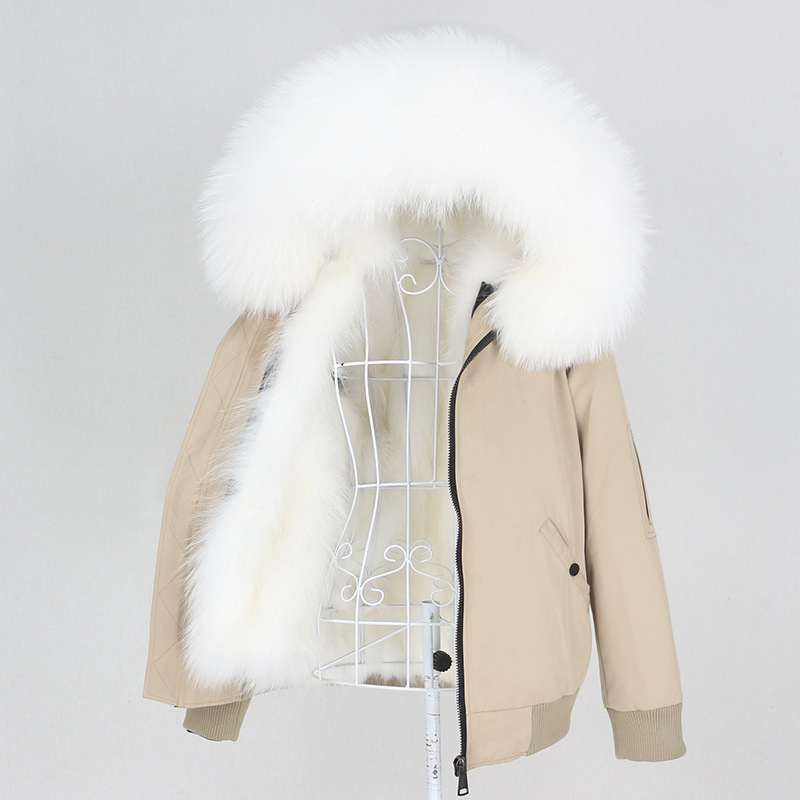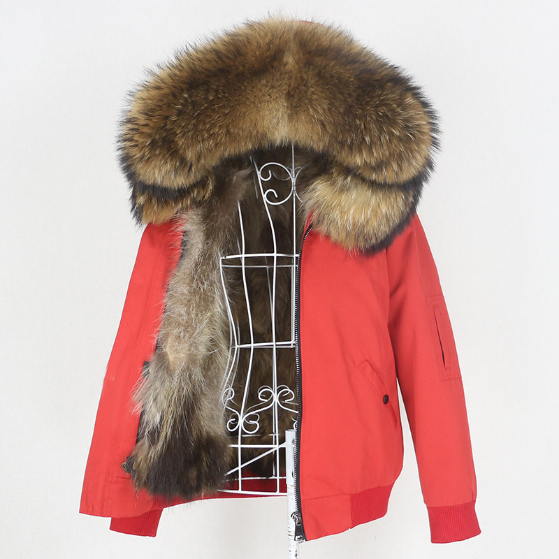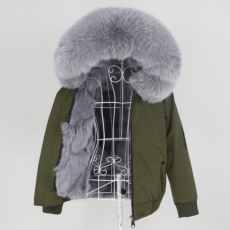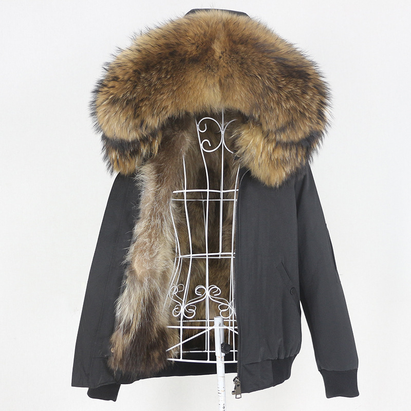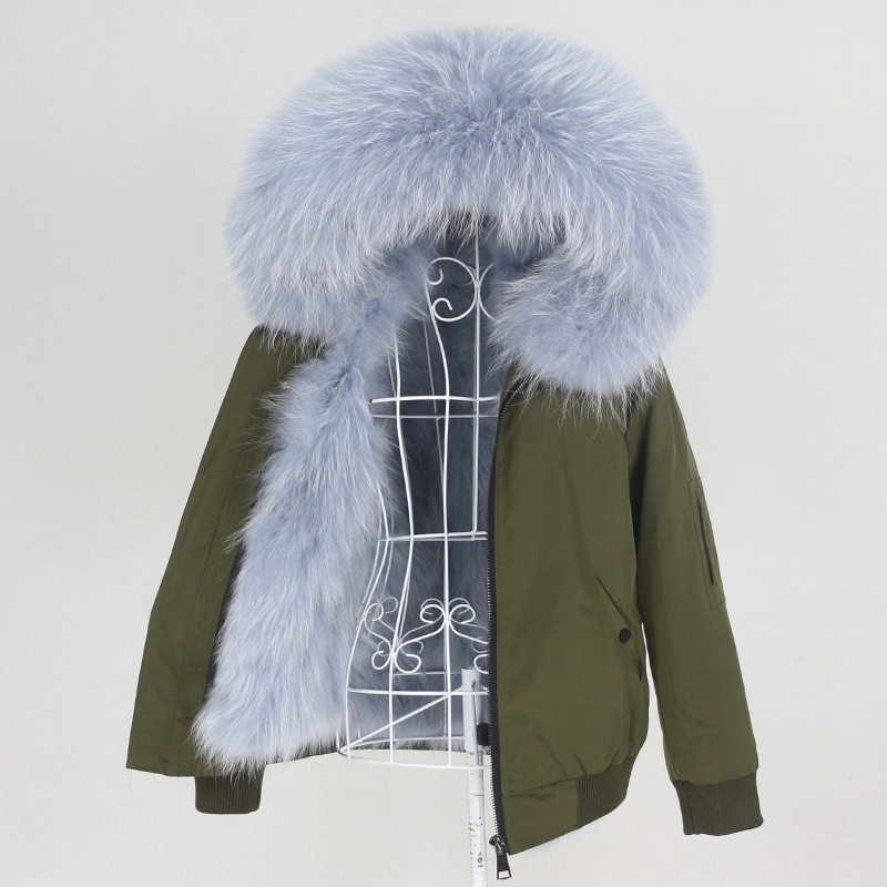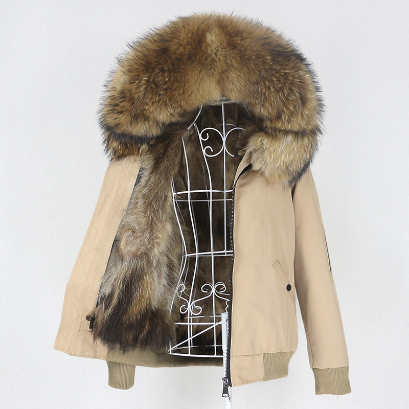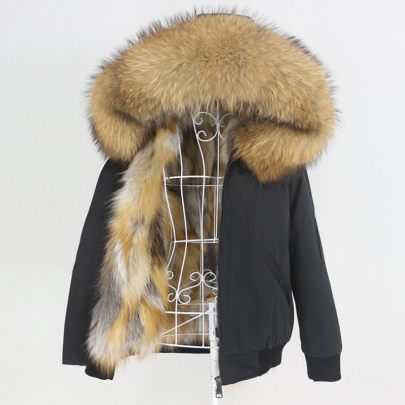 Damenbekleidung Parka Verdicktes Waschbärfellfutter Abnehmbarer Kragen aus echtem Fuchspelz Jacke Pelzmantel