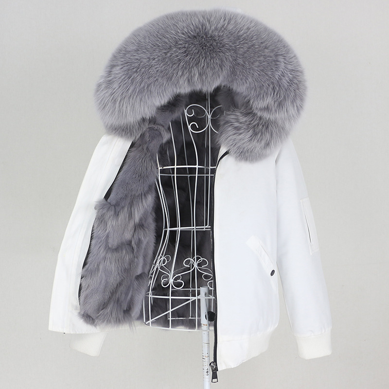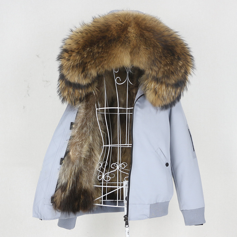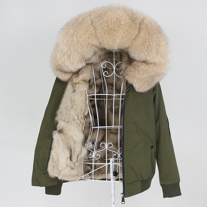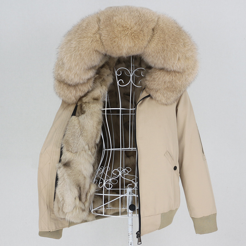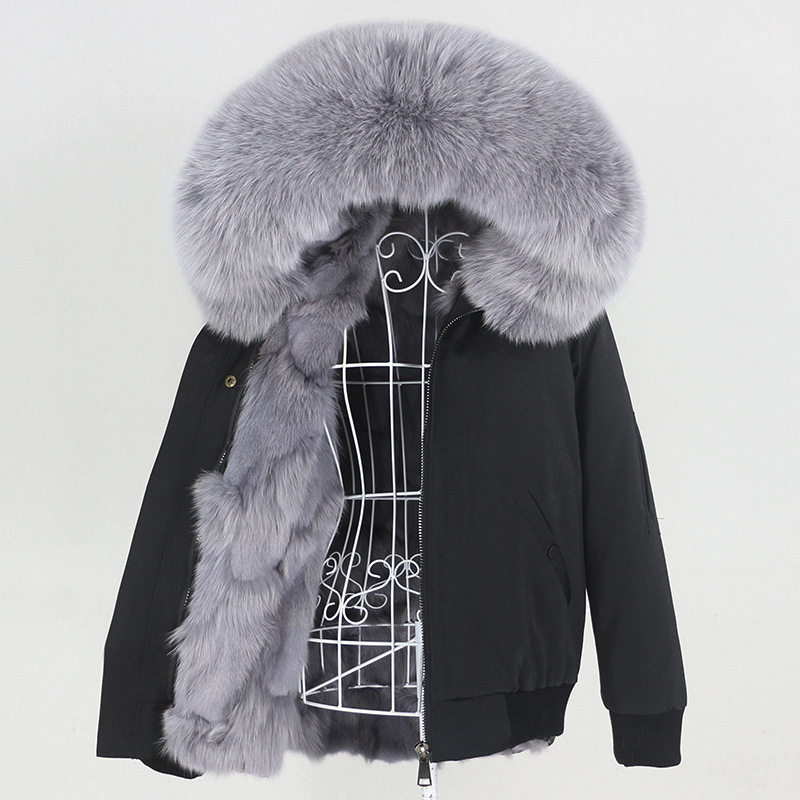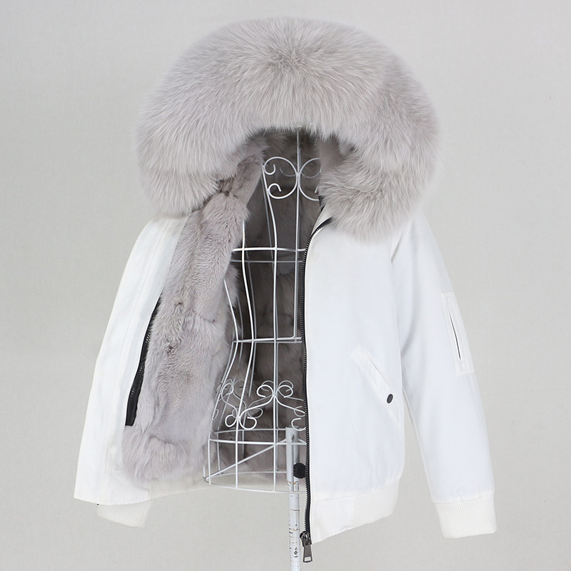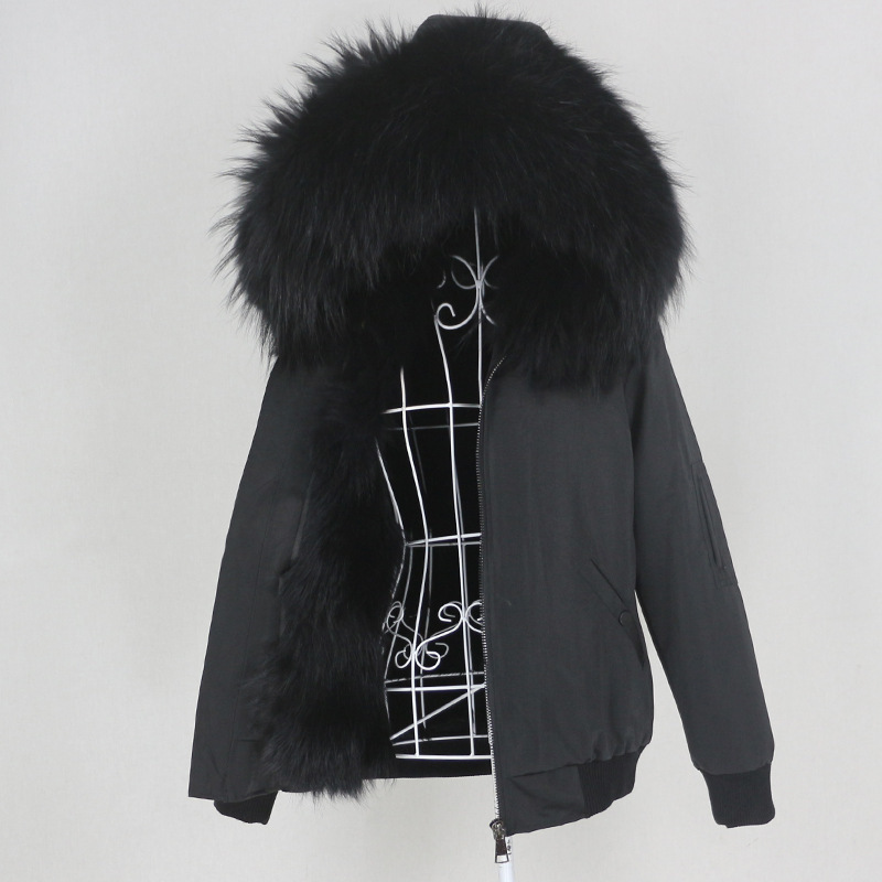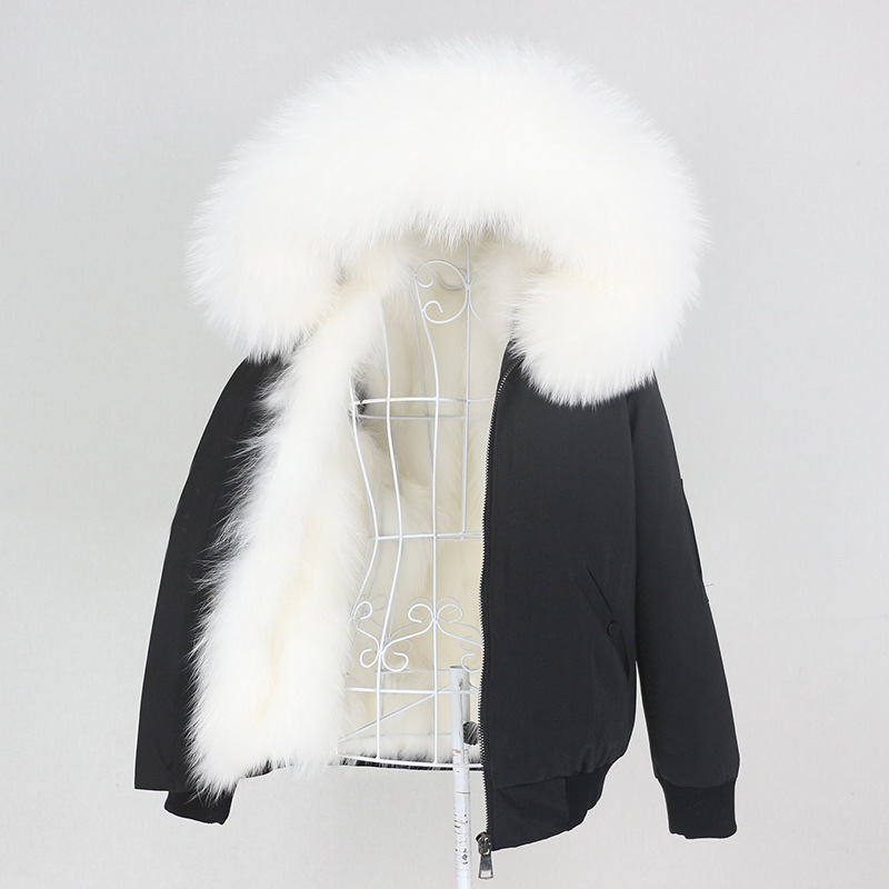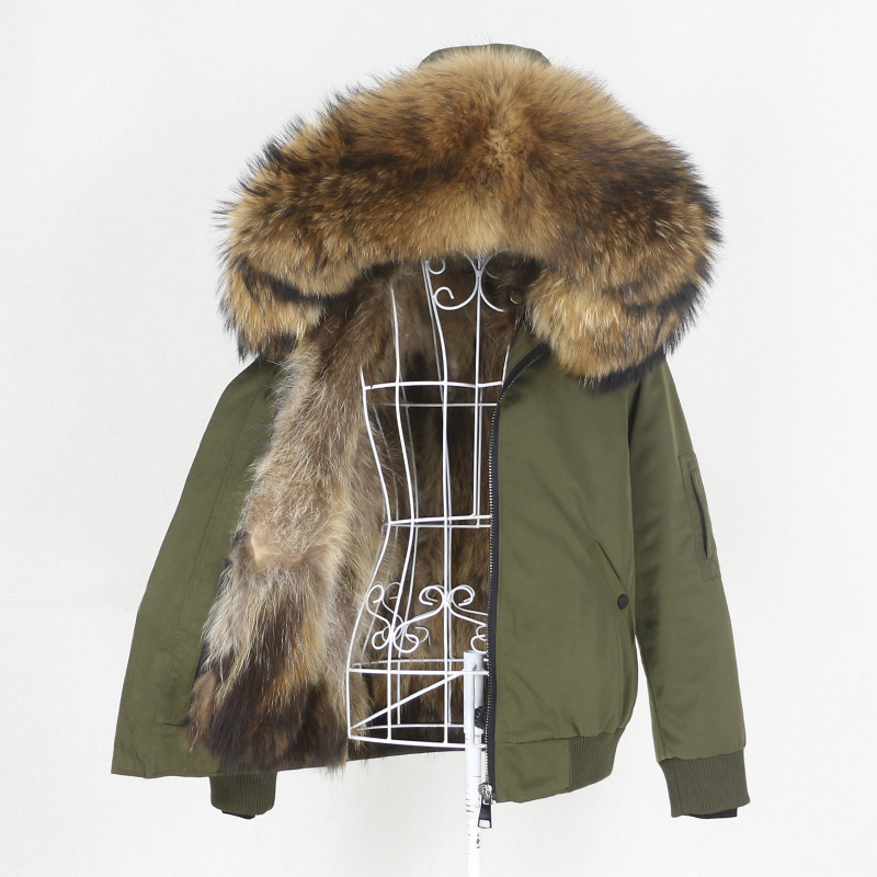 Damenbekleidung Parka Verdicktes Waschbärfellfutter Abnehmbarer Kragen aus echtem Fuchspelz Jacke Pelzmantel