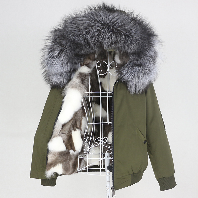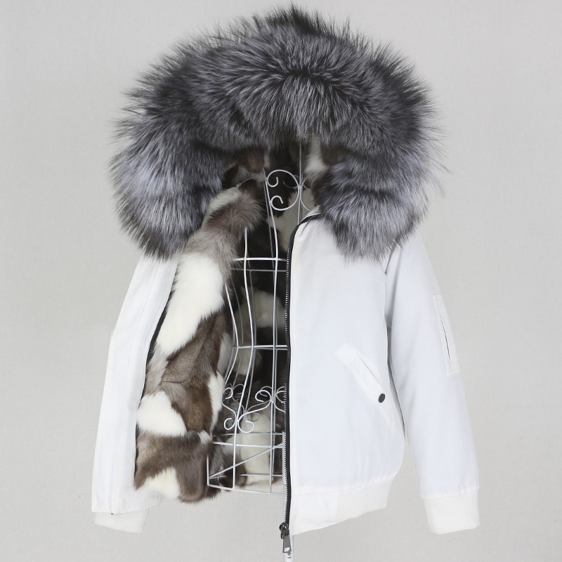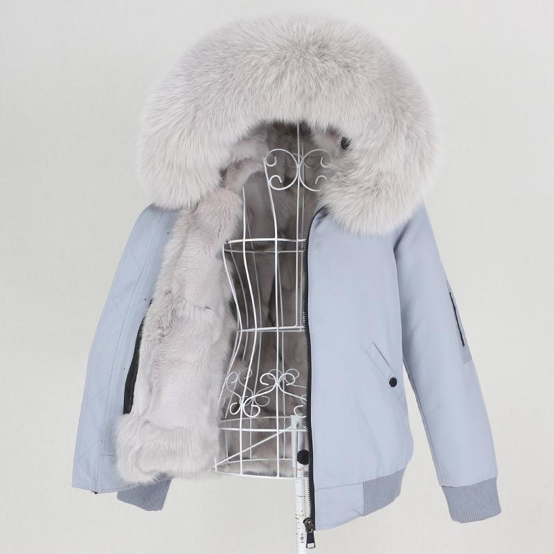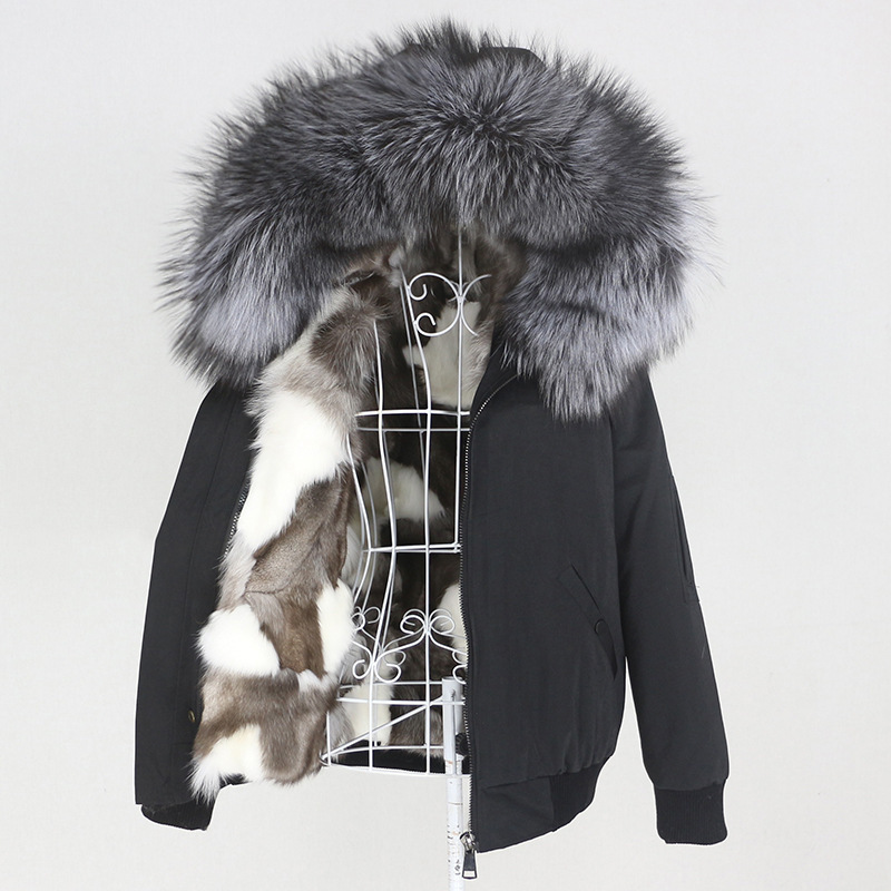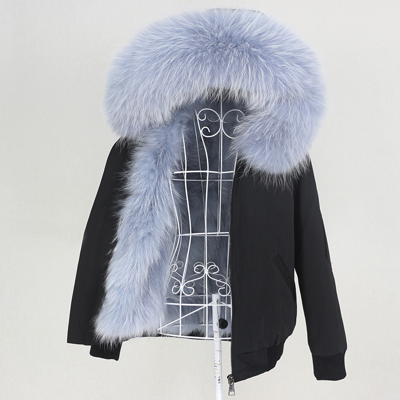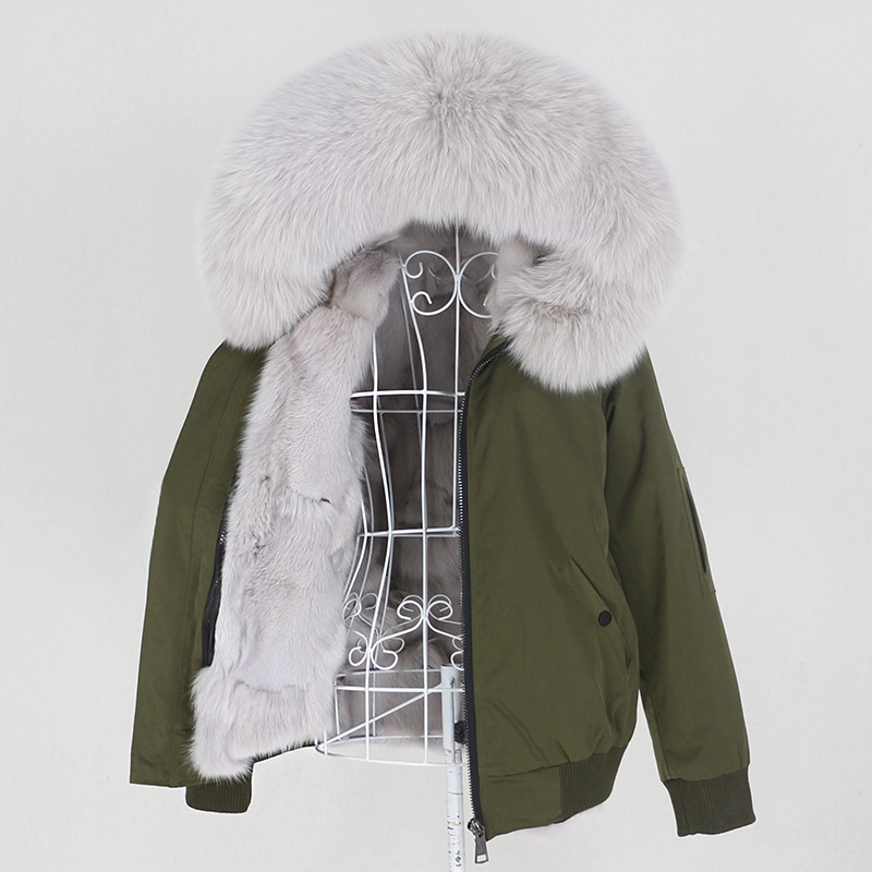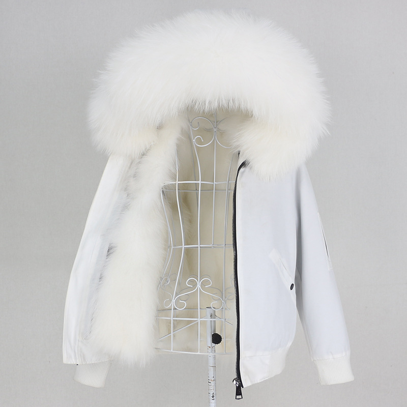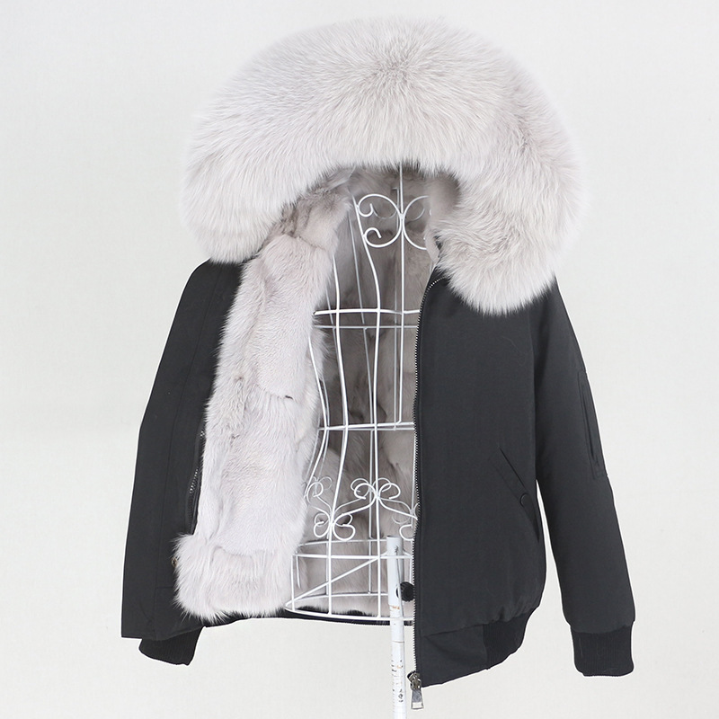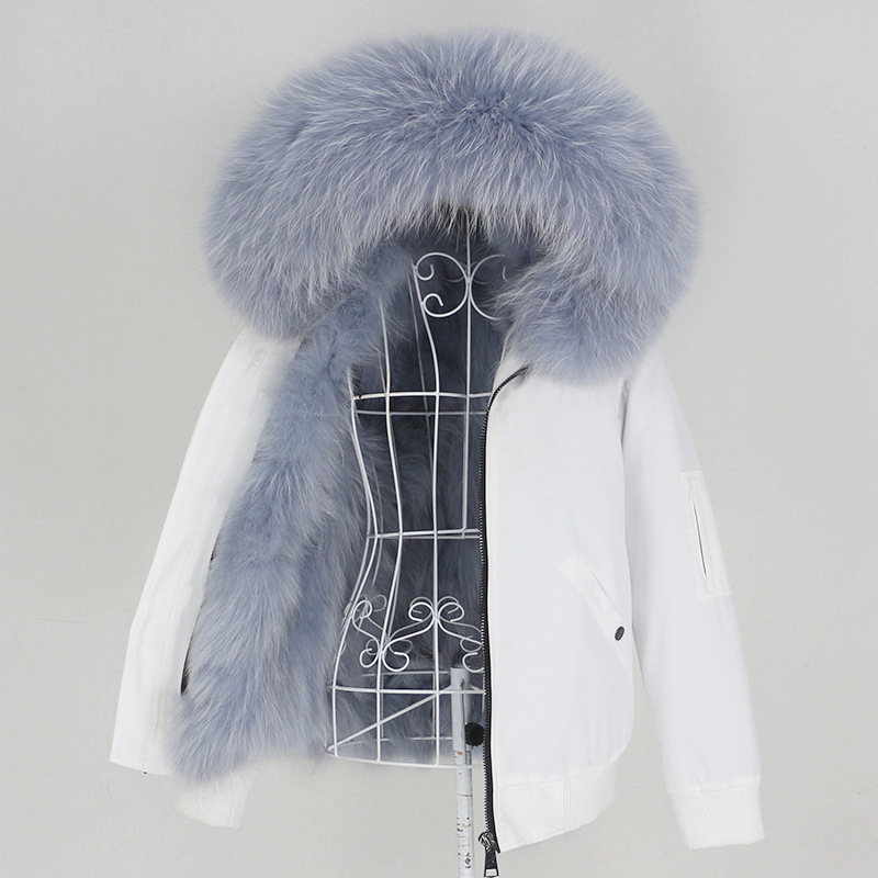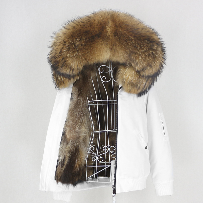 Damenbekleidung Parka Verdicktes Waschbärfellfutter Abnehmbarer Kragen aus echtem Fuchspelz Jacke Pelzmantel