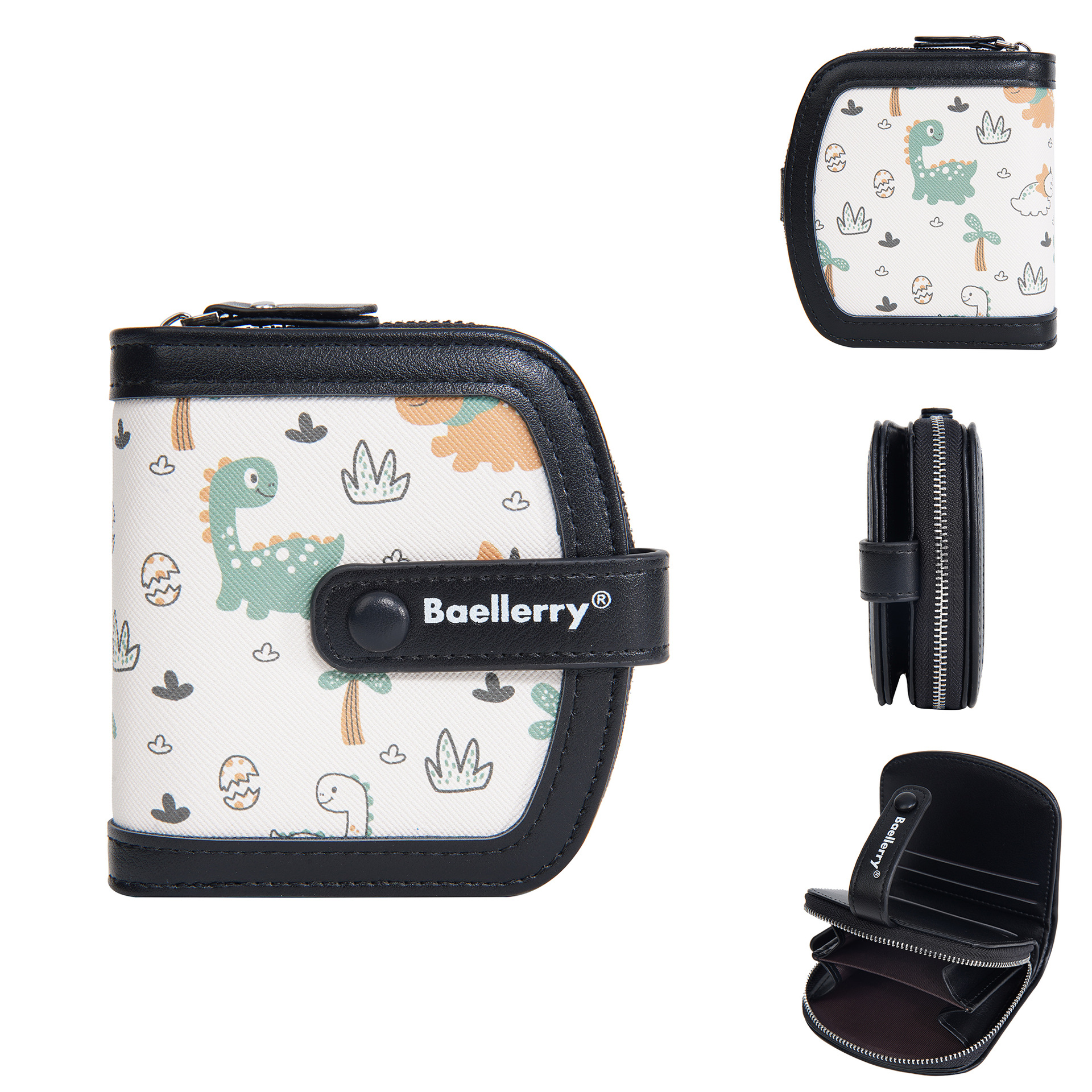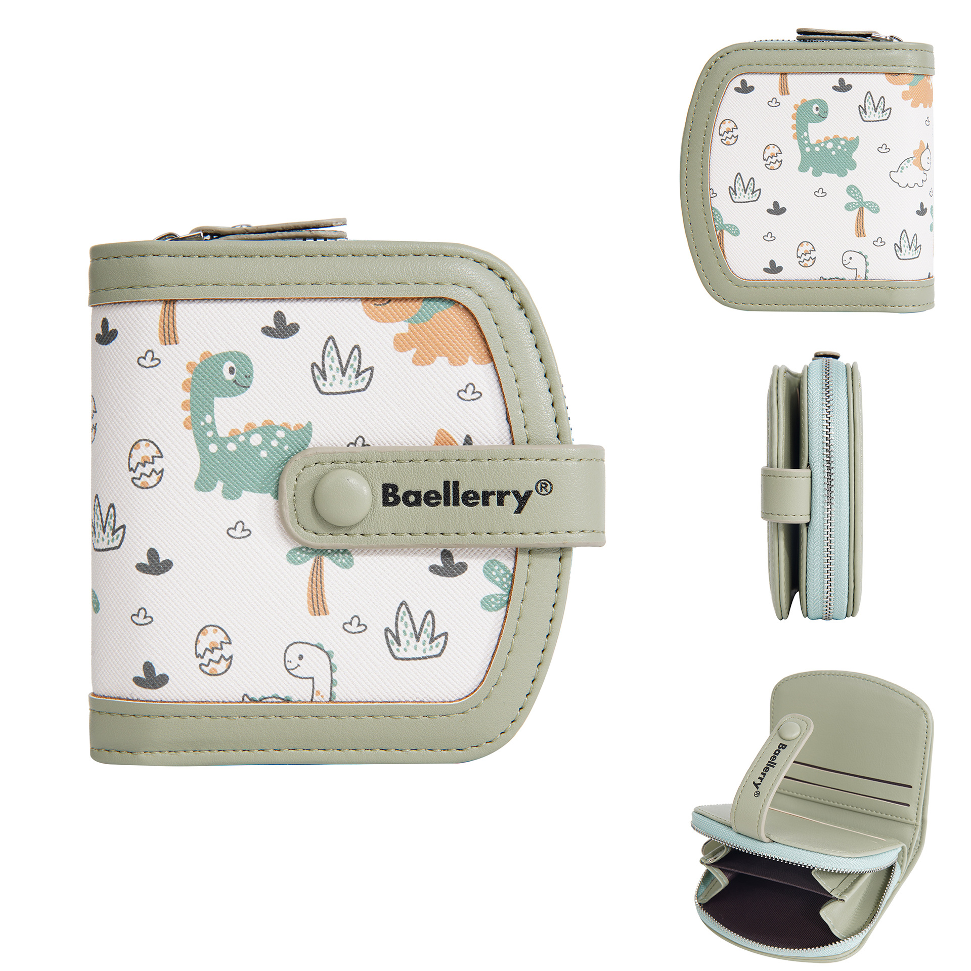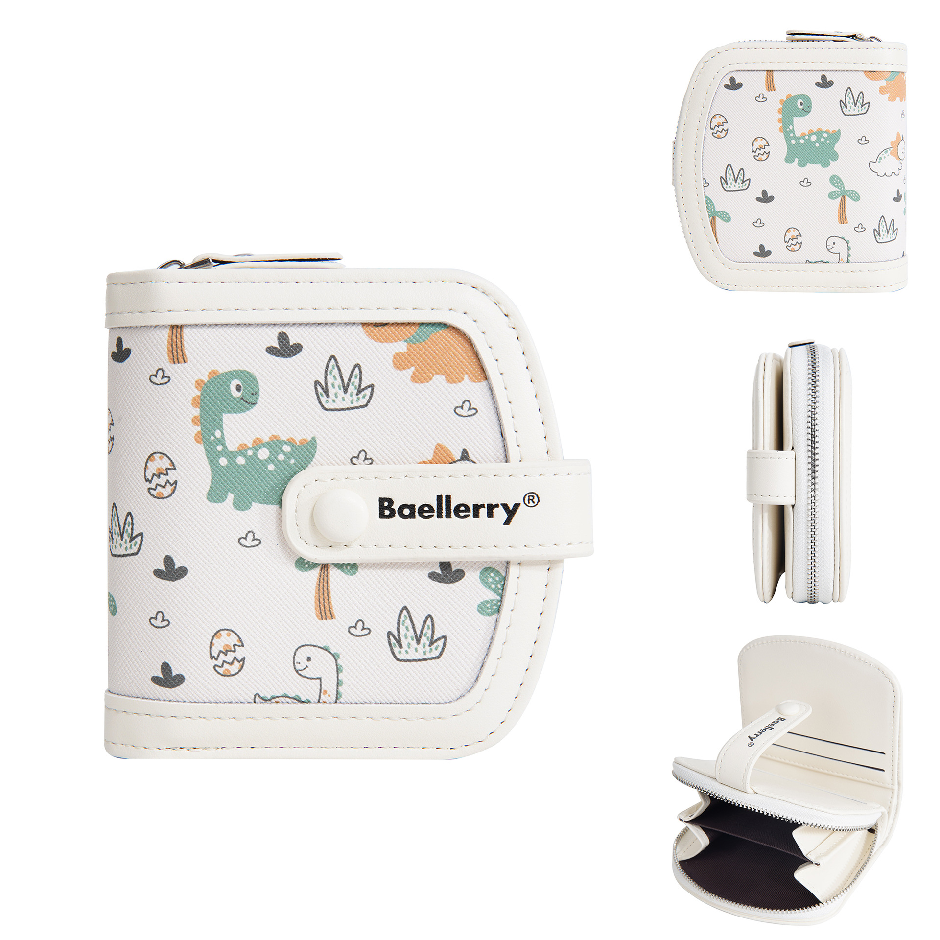 Kleine Geldbörse für Damen, niedlicher Dinosaurier-Druck, zweifach faltbarer Kartenhalter, Ledergeldbörse mit Reißverschluss und Münzfach
