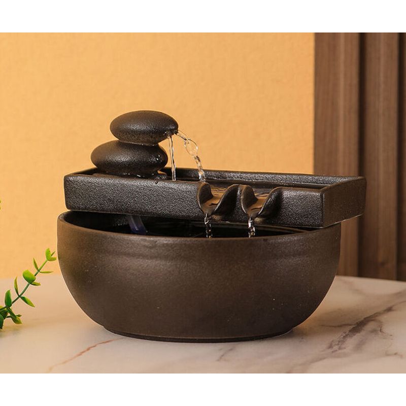 Xintianquan Small Ceramic Wealth-Attracting Water Fountain Ornament for Home Living Room TV Cabinet Tea Room Desk Decoration