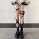 YAHUdie Lace-Up Socks Summer Autumn Thin Lace Hollow Half-Cross Calf Socks Over-the-Knee Black Stockings