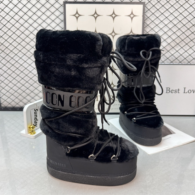 Zees 2025 Winter New Upgraded Moon Snow Damen-Skischuhe mit hohem Schaft, Schnürung, rutschfest und warm